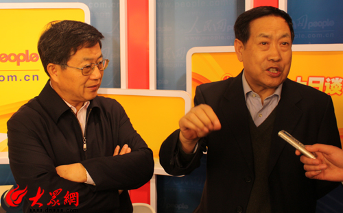 遲福林(左)、汪玉凱(中)接受本網記者采訪