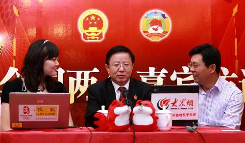 全國第十一屆人大代表,山東省高級人民法院院長周玉華(中)做客本網訪談間(搜狐-唐怡民/攝)
