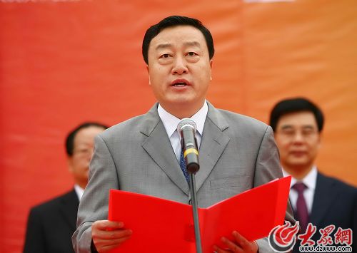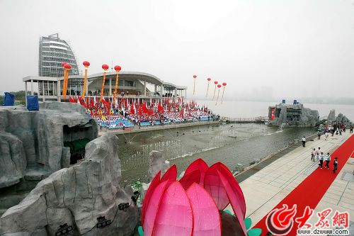 山東省臨沂市北湖心島《蒙山沂水》演出舞臺,全運火炬省內傳遞的第五站在這里進行。上午9:00,火炬傳遞儀式正式進行,有3萬余名市民前來為火炬傳遞吶喊助威。