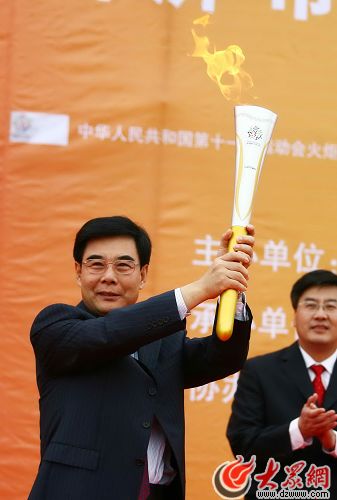 啟動儀式由臨沂市副市長王曉嫚主持,市委副書記張務鋒代表臨沂市政府致辭,臨沂市委書記連承敏宣布火炬傳遞開始,第九屆全運會冠軍付方明高舉首棒起跑。當天的火炬傳遞起點北湖心島,終點為鳳凰廣場,全長4公里,火炬手90名,有3萬余名市民前來為火炬傳遞吶喊助威。(記者 王鴻光)