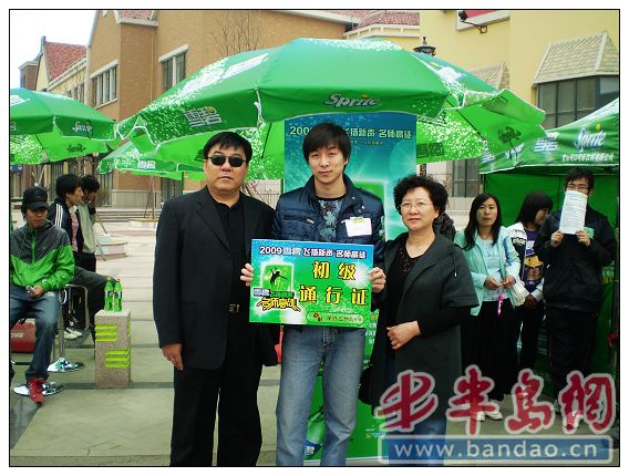 4月25日、26日由山東賽區(qū)主辦方青島可口可樂(lè)飲料有限公司主辦的2009『雪碧』飛揚(yáng)新聲名師高徒海選活動(dòng)繼續(xù)進(jìn)行!青島在KTV渠道與學(xué)校渠道分別進(jìn)行,在音樂(lè)之聲暢歌店、海樂(lè)迪香港中路店、科大嶗山校區(qū)、青大校區(qū)幾個(gè)地方展開,現(xiàn)場(chǎng)歌迷歡呼雀躍,群情振奮!比賽現(xiàn)場(chǎng)精彩迭起,高潮不斷,成為了一片歡樂(lè)海洋!