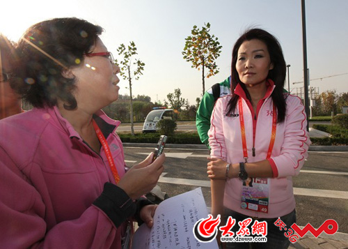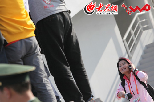 冬日娜在想辦法近距離接觸劉翔。大眾網(wǎng)記者楊博 攝