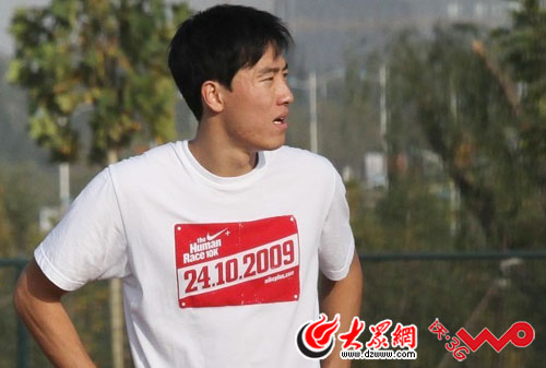 劉翔身著印有“24.10.2009”的T恤。大眾網記者楊博 攝