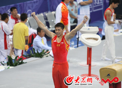 大眾網(wǎng)——山東聯(lián)通3G聯(lián)合報道(記者 閆明清 新婷 隋喬 爾印 洪棟) 9月18日晚上,十一運會體操男子個人全能決賽在奧體中心體育館開戰(zhàn)。經(jīng)過六輪的激烈角逐,最終北京選手滕海濱以89.35分問鼎金牌,川將馮喆89.1分屈居亞軍,摘得銀牌,江蘇選手呂博得到銅牌。山東隊的黃玉國、張成龍分別以88.150分和87.900分位居每四、第五名。