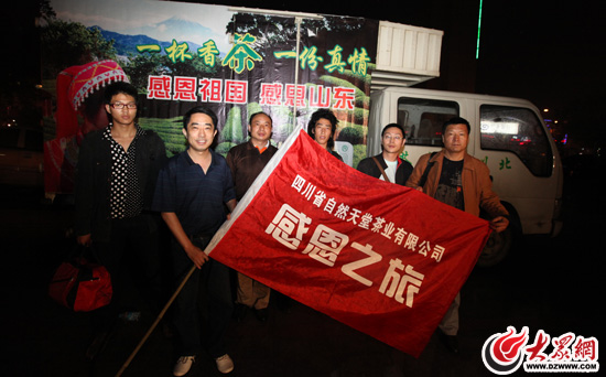 大眾網(wǎng)5月27日訊(記者 曹亮 劉國棟)27日晚上8時(shí),五名北川漢子駕駛一輛箱式貨車,經(jīng)過27個(gè)小時(shí)的長途跋涉,把承載“感恩山東”之情的北川茶從遠(yuǎn)在1600多公里之外的綿陽順利運(yùn)抵濟(jì)南。自6月1日起,北川茶“感恩山東之旅”將在泉城拉開帷幕。