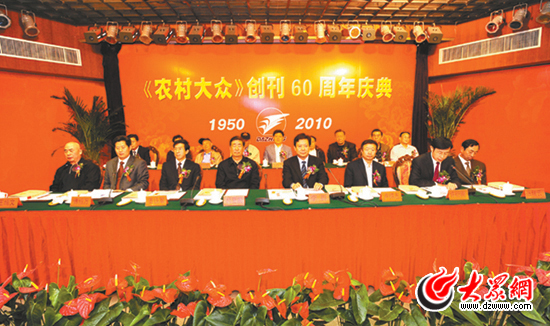 今年5月,《農(nóng)村大眾》迎來(lái)六十華誕。大眾報(bào)業(yè)集團(tuán)隆重舉行慶典,慶祝《農(nóng)村大眾》創(chuàng)刊 60周年。原中共中央政治局委員、國(guó)務(wù)院副總理、全國(guó)人大常委會(huì)副委員長(zhǎng)姜春云題詞祝賀,勉勵(lì)《農(nóng)村大眾》“立足全局,服務(wù)三農(nóng)”。中共山東省委常委、宣傳部長(zhǎng)李群出席慶典并講話(huà)。省人大常委會(huì)原主任韓喜凱出席慶典。大眾報(bào)業(yè)集團(tuán)黨委書(shū)記、董事長(zhǎng)、總編輯傅紹萬(wàn)對(duì)《農(nóng)村大眾》提出殷切期望。