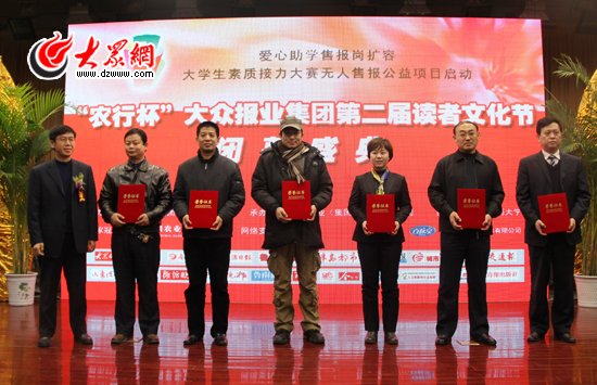 演講結(jié)束后,中國農(nóng)業(yè)銀行山東省分行等七家單位獲頒讀者節(jié)卓越功勛獎,6名齊魯晚報讀者獲得拍客大賽獎、12名讀者獲得濟南地區(qū)熱心讀者獎。