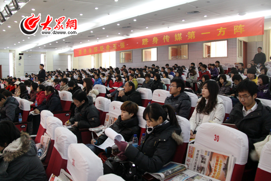 在上午進行的閉幕典禮上,大眾報業(yè)集團優(yōu)秀記者陳中華和張剛分別做了題為《干哪行干好哪行--我個人的業(yè)務(wù)成長體會》和《如何當(dāng)一名合格的新聞記者》的精彩演講,演講進行中山東中醫(yī)藥大學(xué)小禮堂內(nèi)掌聲此起彼伏,近500名的師生被兩位記者精彩的演講深深打動。