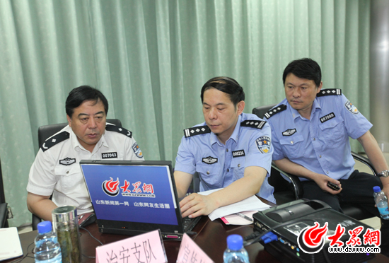 濟南市治安支隊支隊長王建華(左一)在線回答網友問題