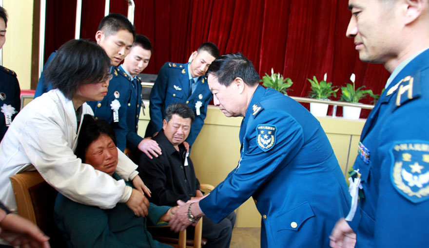 濟(jì)空航空兵官兵為馮思廣烈士送行