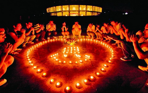 于是學(xué)生們輕輕地走到蠟燭的外圍,每個人都安靜地守著,蠟燭繼續(xù)燃起。