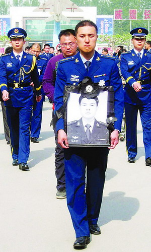 5月12日,濟空航空兵某師官兵為馮思廣烈士送行。新華社發