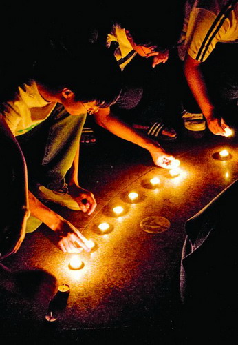 于是學生們輕輕地走到蠟燭的外圍,每個人都安靜地守著,蠟燭繼續燃起。