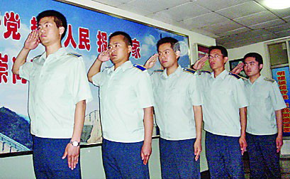 在校國防生向馮思廣致敬。 記者 孫銀峰 毛琳琳 攝