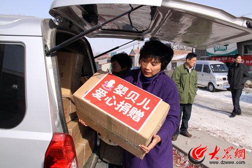 為了確保今天的行程,蒙牛阿拉乳制品有限公司濟南銷售處的工作人員5點多就起來裝貨,他們帶來了20箱蒙牛阿拉金裝佳智奶粉,足夠孩子們吃1年多。山東國健乳業(yè)的趙洋總經(jīng)理親自駕車,針對小寶貝們早產(chǎn),她特地帶來了兩箱的牛初乳和高培鈣油同補,這些都是孩子們必須的保健品。
