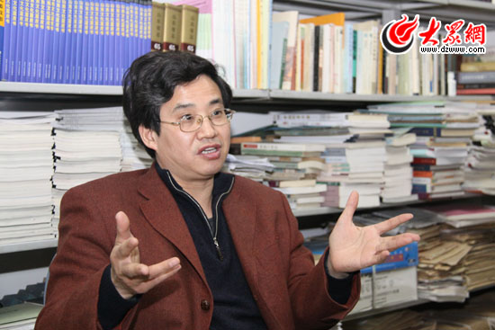山東社會(huì)科學(xué)院文化研究所所長(zhǎng)、山東社會(huì)科學(xué)院文化產(chǎn)業(yè)中心副主任涂可國(guó)接受大眾網(wǎng)記者采訪,暢談雷鋒精神。劉國(guó)君/攝影