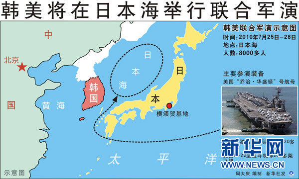 據報道,作為“天安”號事件的后續措施之一,美韓將于本月25日至28日在韓國東部海域(即日本海)舉行海上聯合軍事演習。此后,美韓還將在8月16日至26日舉行代號為“乙支自由衛士”的聯合軍事演習等。