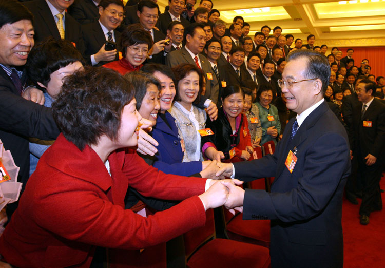 3月8日,中共中央政治局常委、國務院總理溫家寶參加十一屆全國人大三次會議山東代表團的審議。新華社記者姚大偉攝