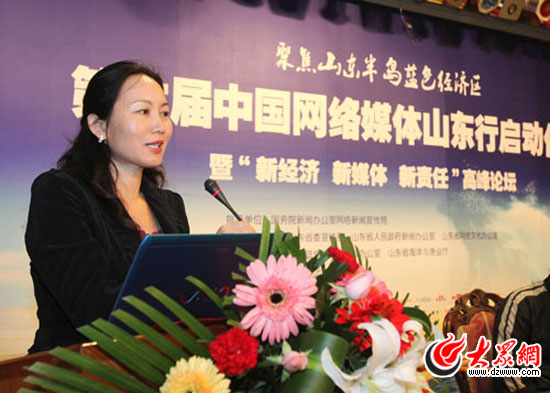 大眾網濟南10月22日訊 (記者 吳哲 隋喬)今天上午,清華大學新聞與傳播學院教授、博士生導師陳昌鳳在“新經濟、新媒體、新責任”高峰論壇做主題演講,隨著電子科技的迅速發展和更加符合網絡時代閱讀模式的轉變,以網站為代表的新媒體面臨新的機遇和挑戰,在web2.0時代將大有可為。
