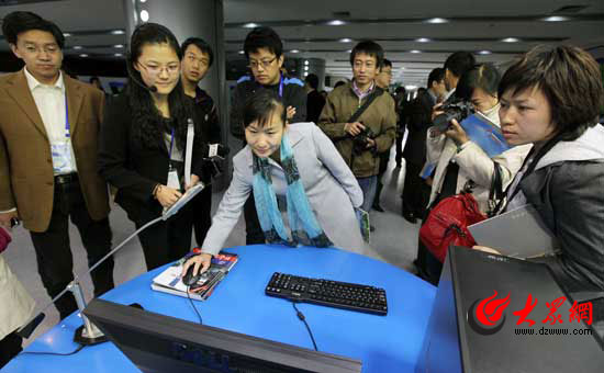 網(wǎng)絡(luò)媒體記者親自體驗低能耗光電設(shè)備的新奇。