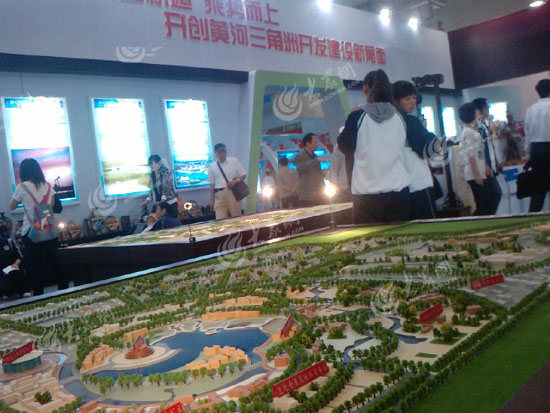 整個東營展廳核心部分是三個2米×3米的大沙盤,分別展示了黃河口文化產(chǎn)業(yè)基地、黃河口生態(tài)旅游區(qū)、孫子文化主題公園三個文化產(chǎn)業(yè)項目。這三個項目是未來東營文化產(chǎn)業(yè)發(fā)展的主要方向。東營展廳負責人告訴記者,東營展廳的策劃和創(chuàng)意緊緊圍繞黃河三角洲高效生態(tài)經(jīng)濟區(qū)上升為國家戰(zhàn)略,主打黃河從這里入海、石油之城、生態(tài)之城、黃河水城的主題,突出展示黃河入海口獨特秀麗的自然風光,表現(xiàn)孫武故里、呂劇故鄉(xiāng)的文化優(yōu)勢。