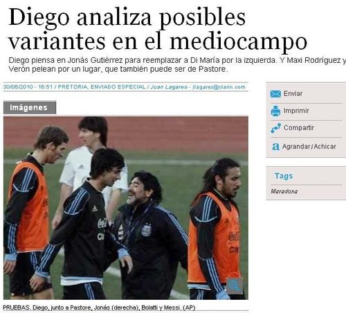 所以,馬拉多納打算讓特維斯后撤到中場右路,與貝隆、馬斯切拉諾搭檔,給予他一定的自由度。而左路方面,古鐵雷斯則有望替下狀態(tài)平平的迪馬利亞。馬拉多納也希望古鐵雷斯在左路的防守能給阿根廷帶來幫助。
