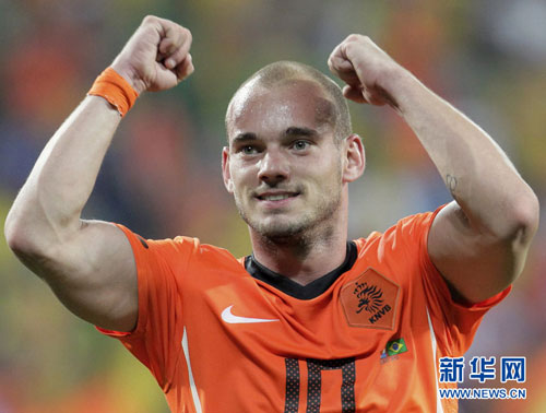 斯內德(荷蘭):現年26歲、參加過2006年世界杯賽的斯內德算得上是老將了,但那時的荷蘭隊的整體低迷使年輕的斯內德頗顯稚嫩。2010年,經過歐戰洗禮、成功加冕的國米中場發動機表現驚艷——作風強悍、技術全面、視野開闊。對巴西隊一戰一腳破門、一次強迫對方烏龍,斯內德率領“荷蘭郁金香”強硬闖入四強,讓這支天才隊伍充滿斗志、所向披靡。
