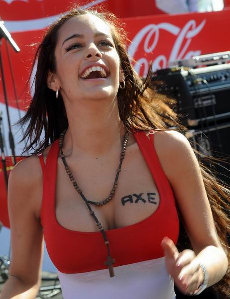 含春笑臉花念媚,娉婷柳腰羨環肥。酥乳波漾香艷蕩,銷魂留字千金貝。在巴拉圭足球教母、乳神名滿全球的今天,如果在她匯聚全世界目光的曼妙胸部留字,那該價值多少錢?筆者孤陋寡聞無法得知,毫無疑問這是一個“世間之寶地,無價之風騷”的白金廣告肥位。但不妨對她胸口近日出現的三個字母“AXE”,進行猜測一番。