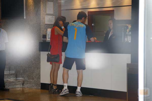 當(dāng)然,其中最引人注目的當(dāng)然是卡西利亞斯和他的主持人女友薩拉。凌晨6點(diǎn)左右,兩人牽手離開了派對,毫不掩飾他們的感情?ㄎ髟跊Q賽勝利后的激吻證明自己對女友的感情。兩人是搭乘出租車離開,前往馬德里市內(nèi)的一家酒店享受他們的私人空間。而在酒店的登記處時(shí),卡西還穿著他在國家隊(duì)的一號球衣,這一幕恰好被當(dāng)?shù)赜浾吲牧讼聛?。