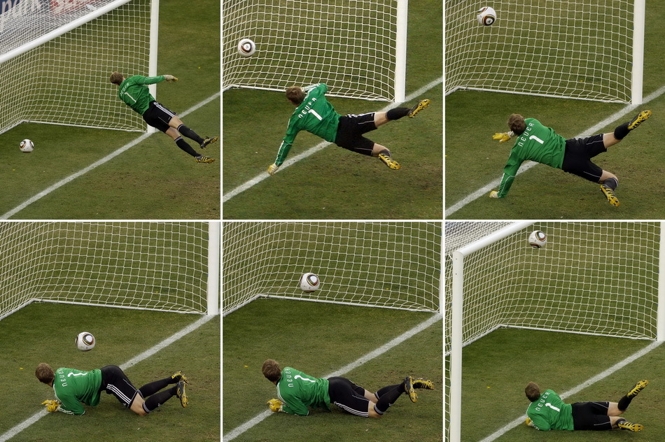 北京時間6月27日,第19屆世界杯一場1/8決賽在布隆方丹的自由州體育場展開爭奪,德國4比1大勝英格蘭。蘭帕德兩度打中橫梁,其中一次彈地越過門線的好球卻未被判罰有效。