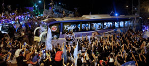 阿根廷回國(guó)球迷?shī)A道歡迎