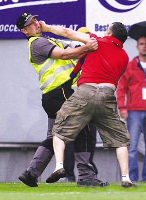 圖:塞爾維亞與新西蘭熱身賽中,一球迷和安保人員發生沖突