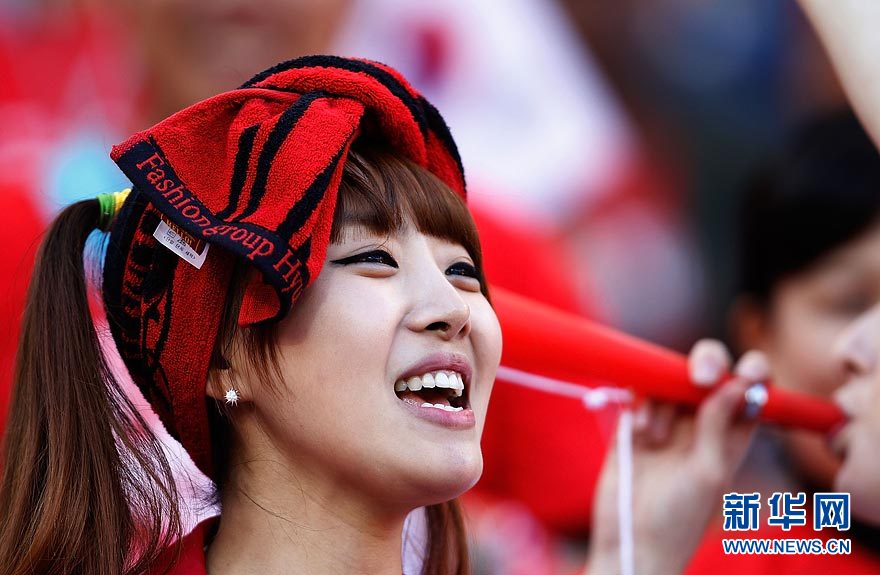 6月12日,一名韓國隊球迷在比賽開始前。當日,在2010南非世界杯B組首場比賽中,韓國隊對陣希臘隊。新華社記者廖宇杰攝
