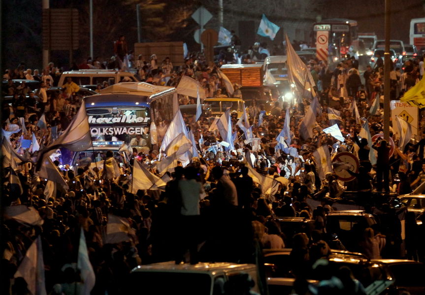 在布宜諾斯艾利斯的主要街道都擠滿了身穿天藍色條紋阿根廷隊服的球迷,很多球迷打出了標語“馬拉多納,請不要離開”,在街道上無數標語中,絕大多數都誰是支持阿根廷隊的,球迷們肯定了球隊在本次世界杯的表現。