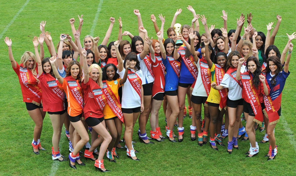 北京時間6月3日,世界杯日益臨近,全世界的球迷們已將目光聚焦到南非,除了比賽場上精彩的足球賽事,足球寶貝也是各國球迷最喜歡的一道亮麗風景。日前,來自世界杯32強各國的32位佳麗齊聚南非,為即將到來的比賽打氣,隨著世界杯的進行,從950名美女間選出的這32位佳麗也將進行一場別開生面的PK,選出最美的一位戴上世界杯小姐的后冠。法新社