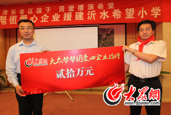 在獲悉這一情況后,大眾網立即發起了“情系老區孩子,用愛播散希望”的愛心援建活動,得到了網友和社會各界的熱烈響應。工商銀行山東分行、中國銀行濟南分行、濟南市中心醫院、海爾集團、山東英才學院、銀座家居、蘇寧電器、圣象地板等愛心企業紛紛伸出援手,短短幾天時間,援建希望小學所需要的二十萬元款項就已經全部到位。