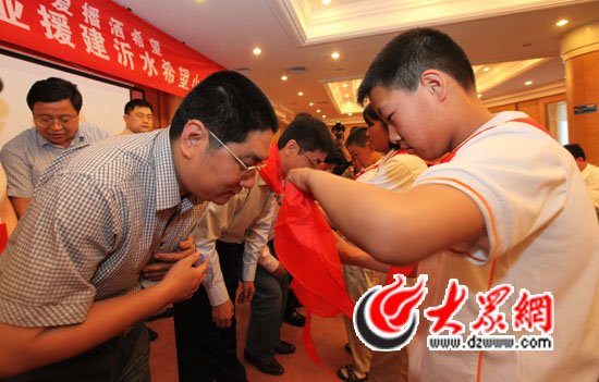 小學生為大眾網總編輯朱德泉系上紅領巾