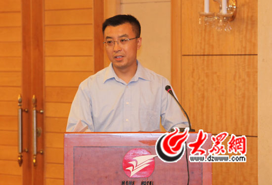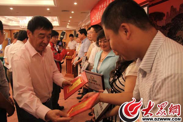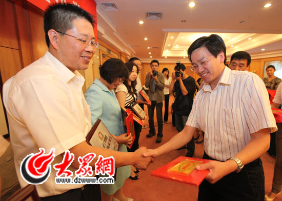 大眾報業集團黨委常委、副總編輯郝克遠為企業代表頒發獎牌