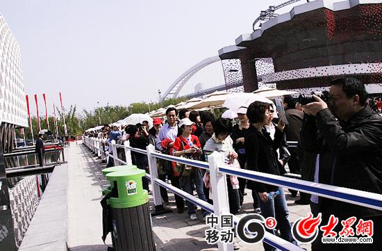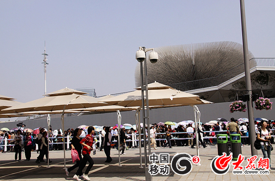 上午還未開館,法國館前等待參觀的游客已經排起了長隊