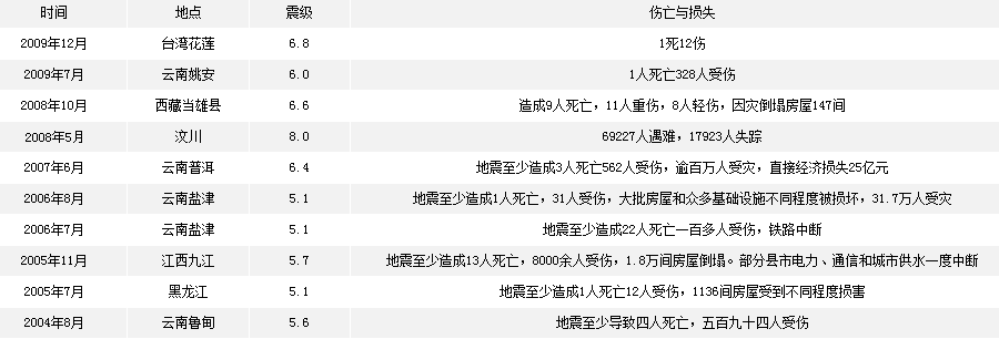2008年6月14日:日本東北地區(qū)發(fā)生的里氏7.2級(jí)地震,造成10人死亡,受傷人數(shù)超過(guò)260人,數(shù)十人下落不明。測(cè)定結(jié)果顯示,此次地震的搖晃強(qiáng)度與日本1995年阪神大地震相當(dāng)。
