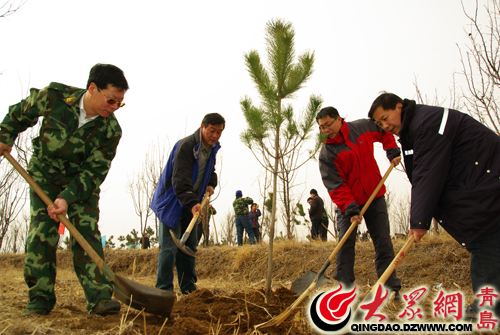 大眾網青島3月12日訊(記者 王瑋 劉亮亮)2010年3月12日,又到一年“全民義務植樹節”,應網民的要求,3月12日上午,大眾網青島站組織300多名網友到嶗山王哥莊港東小后山參加了義務植樹活動。當天共植樹2000多棵,主要有黑松和火炬樹等樹種。
