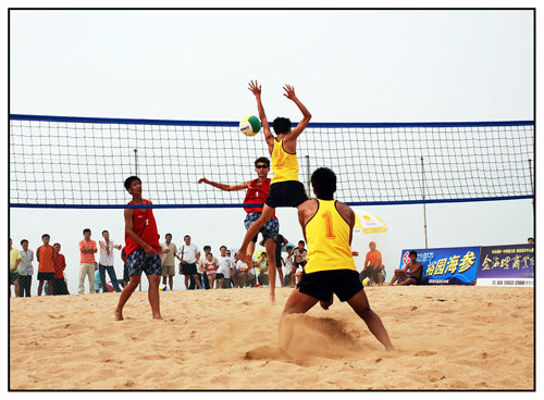 圖為2007山東沙灘排球錦標(biāo)賽資料圖片