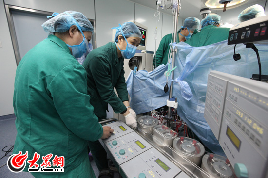10:33分,主動脈狹窄段加寬補片成功,建立體內循環,開始升溫。