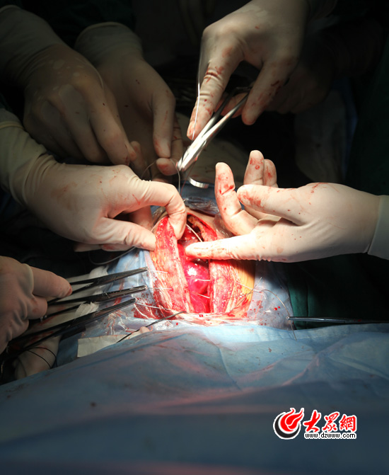 11:56分,對心臟的檢查、測壓結束,心臟的手術已順利完成,正對胸腔進行閉合。