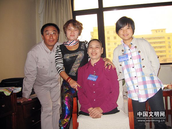 在兩個“女兒”面前,一個是哪里有困難就把愛心灑向哪里的“雷鋒傳人爸爸”郭明義(左一),一個是從哪里跌倒就在哪里回報社會的“板凳媽媽”許月華(右二)。既然已經(jīng)站立,就要懷著感恩的心去走好每一步。中國文明網(wǎng) 逯江南 9月17日攝