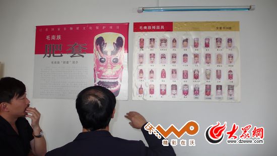毛南族的肥套有36個木面具,代表36個神,根據毛南族諸神的身份及性格特點雕刻而成,形象逼真生動,代表善、惡、貴、賤四大類型