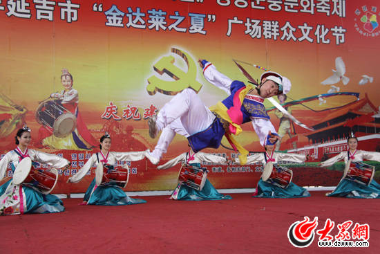 “金達萊是朝鮮族最喜歡的一種花的名稱,在延吉的這個金達萊廣場,每天都有朝鮮族的男女在這里表演本民族的舞蹈。”不過,為了給我們展示最地道的朝鮮族舞,趙本躍找來了延吉朝鮮族藝術團的演員來表演。