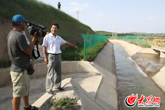 東鄉縣水利局長馬強向記者介紹東鄉縣近兩年的水利工程建設情況