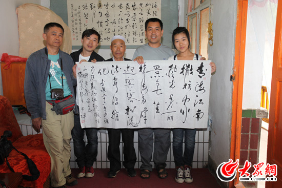 自稱沒有文化的韓占祥,為我們采訪團即興書法一幅