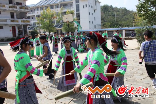 黃果樹中學(xué)的學(xué)生在表演剛剛學(xué)會的布依舞蹈。